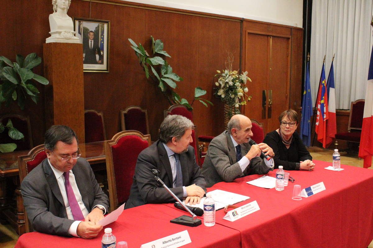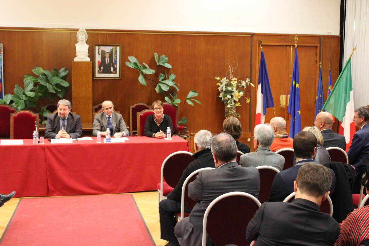 Après une conférence très intéressante de M. Mauro VITTORINI, dirigeant de HIC Aciers, sous la présidence de M. Alberto Bertolini, Consul Général d'Italie à Lyon qui nous a fait l'honneur de sa présence, le public est invité à poursuivre la soirée à l'Espace Citoyen.